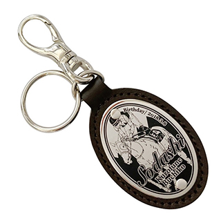 メタルレリーフ+革製のオパール型キーホルダーです。