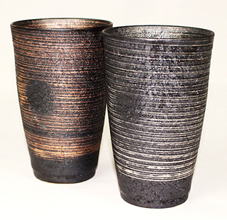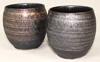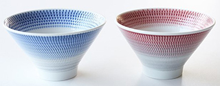 ひっくり返して置いた姿が富士山に見えるお茶碗。ぐるりと入った模様は「飛びカンナ」と言われ、回転させながらハガネの先をあてることによって出来る、熟練の職人技です。