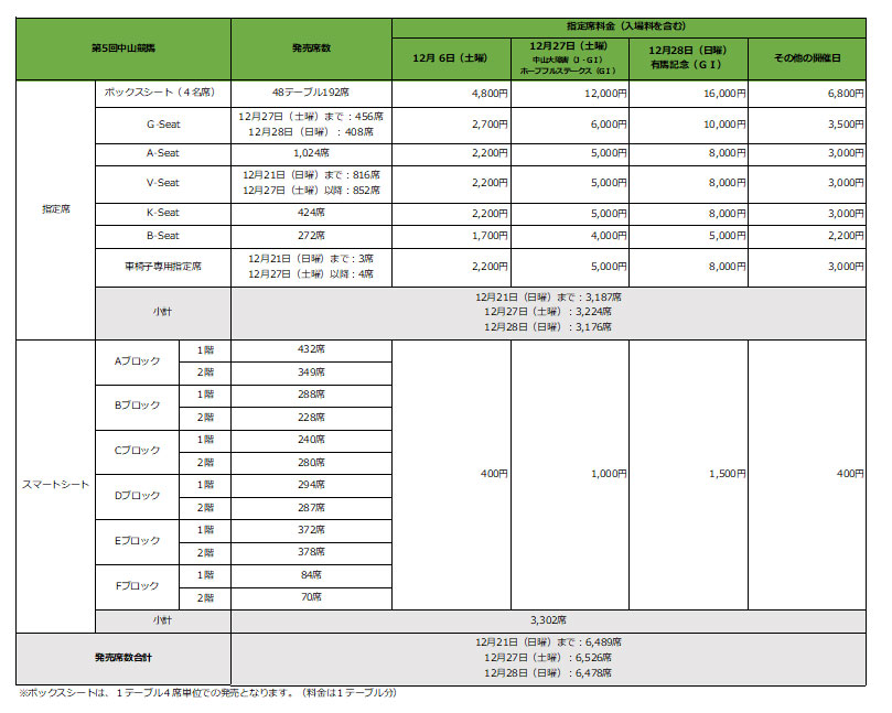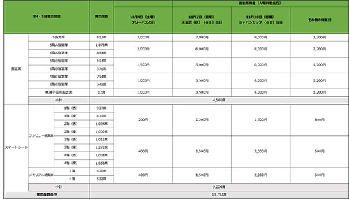 競馬場指定席・スマートシート 料金表・マップ(11月20日(木曜)更新)