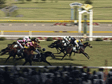 逃げたグレイトジャーニーにロードフラッグが並びかけ、3番手以降の間隔もグっと縮まって、一団となって馬群は直線へと向かいます。残り600m地点で、各馬ともスパートを開始。ヨコにズラリと広がった追い比べが延々と続き、さあ、どの馬が抜け出してくるのか、最後までスリリングなレースとなりました。