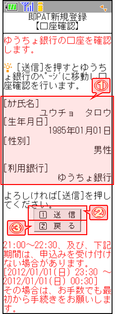 表示内容を口座確認のためにゆうちょ銀行に送信します。
