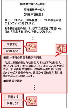 口座振替規定 即PATご利用における口座振替サービスに関する規約です。内容をご確認ください。 「同意確認」選択欄 口座振替サービス規約の内容をご理解いただき、同意される場合には、同意するボタンを押してください。