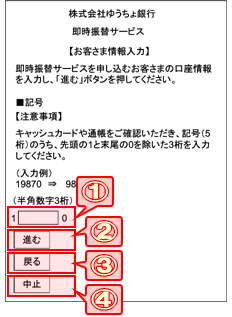 記号を入力されましたら進むボタンを押してください。口座番号入力画面へ移ります。