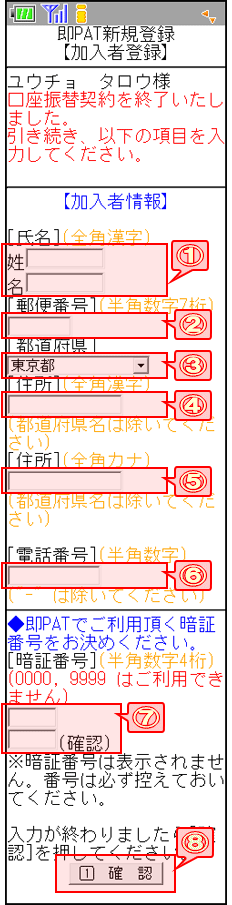 この画面では、即PATへの新規登録にあたり必要な情報を入力していただきます。すべての項目を入力してください。 |