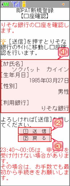 表示内容を口座確認のためにゆうちょ銀行に送信します。