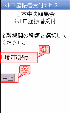 この画面では、引落で使用される金融機関の種類を選択してください。