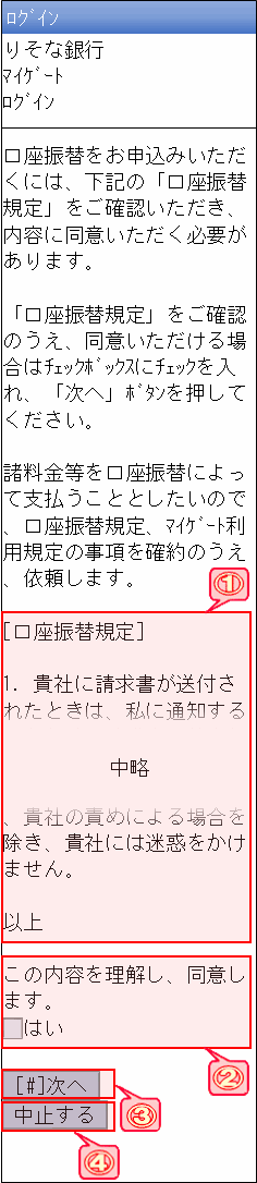 口座振替サービス規約の内容をご理解いただき、同意される場合には、はいのチェックボックスにチェックを入れてください。