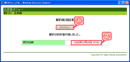 この画面が表示されれば、解約予約取消の受付が完了です。