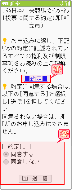 を表示します。約定の内容をご理解いただき、同意された上で、送信ボタンを押し、登録手続きに進んでください。