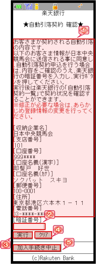 表示内容に間違いがなければ、暗証番号入力欄に暗証番号を入れて下さい。