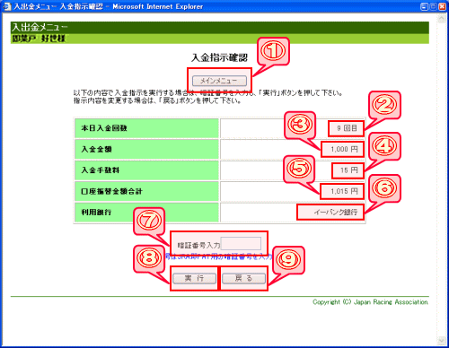 この画面では、お客様に入力していただいた入金情報を確認していただきます。 |