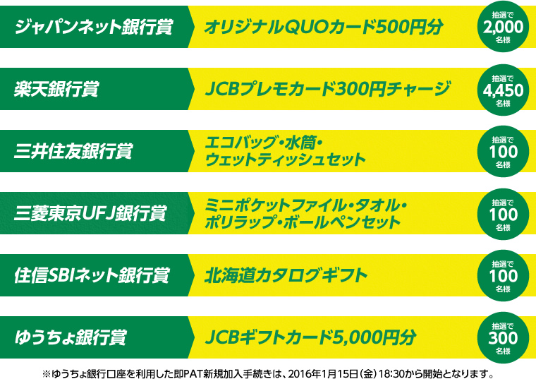 ※キャンペーン開始時に即PAT会員の方は、抽選対象とはなりません。