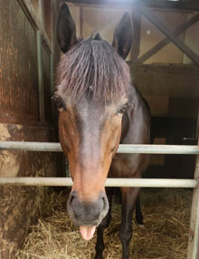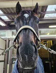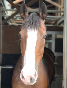 「少し怖がりな僕だけど障害練習も頑張ってるよ。芦毛の僕に会いに来てね!」