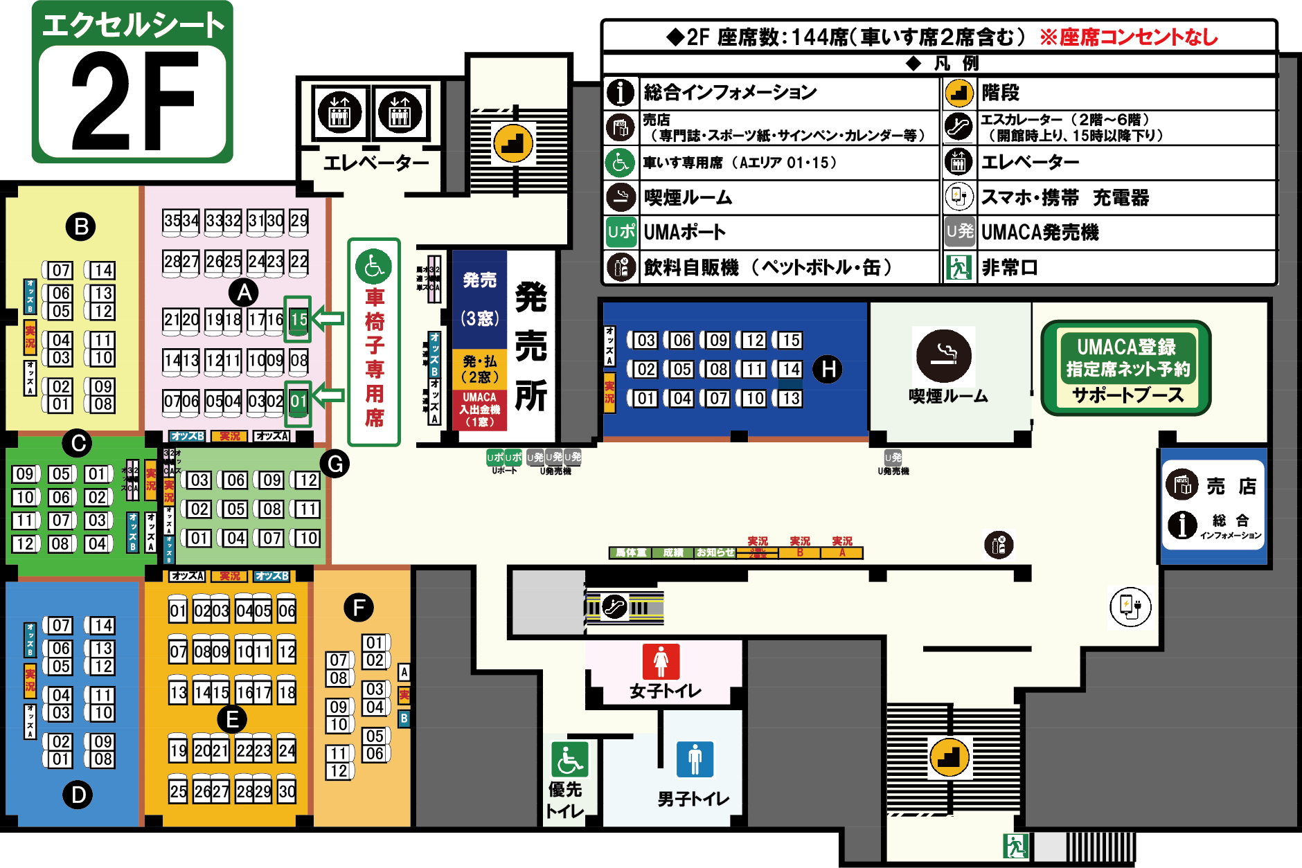 ・ 車椅子対応のお席ご利用の方もエクセル利用券発売所に直接お越しください。