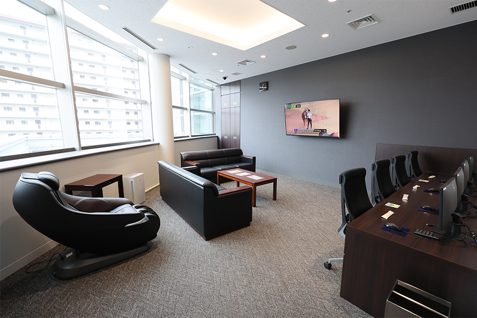 座席は全席リクライニングシートで、くつろぎながらゆったりと競馬を楽しめる上質なプライベート空間をご提供しております。エクセルフロアラウンジには、無料のマッサージチェアや「雑誌・新聞コーナー」を設置しております。 |