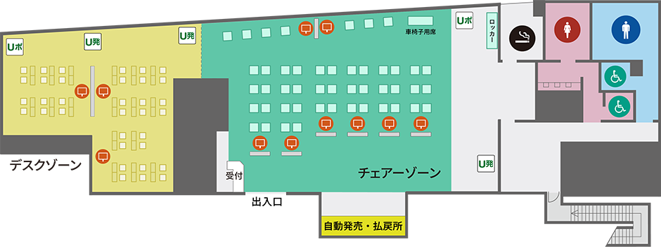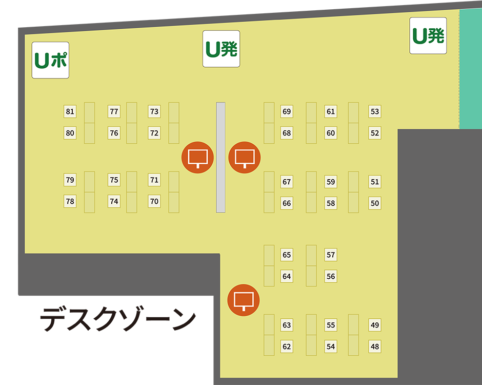 チェアーゾーン48席/デスクゾーン34席