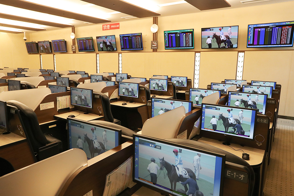 ゆったりとした快適な空間で、1日競馬をお楽しみいただけます。全席に21.5インチ液晶モニターとパソコンを完備しており、レース実況やオッズ等をご覧いただけます。