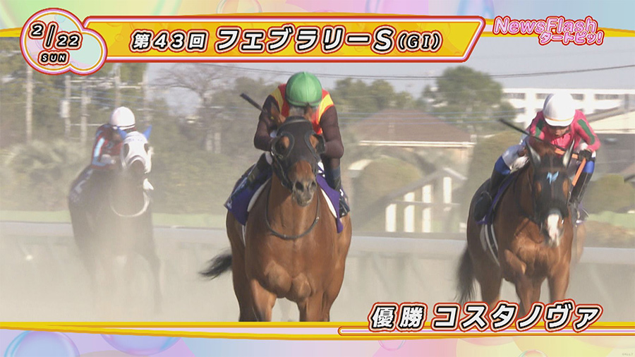 今週のニュースフラッシュでは、先週行われたフェブラリーSなど重賞の結果を振り返るほか、区切りの勝利を達成した騎手の紹介、2025年度東京競馬記者クラブ賞特別功労賞授賞式の模様、永世竜王資格獲得記念碑除幕式の模様、「武豊デビュー40年〜前人未踏の記録〜」セレモニーの模様、23日に名古屋競馬場で行われたかきつばた記念の結果をお送りします。