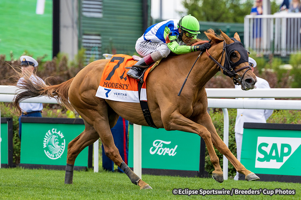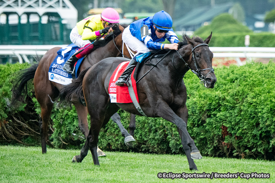 2歳(2023年)9月のナタルマS(G1・カナダ)に優勝。続くブリーダーズカップジュベナイルフィリーズターフ(G1・アメリカ)でも3着に入りました。昨年は5月のヒルトップS(アメリカ)を楽勝した後、7月のベルモントオークス招待(G1・アメリカ)はシンデレラズドリームの3着、8月のレイクプラシッドS(G2・アメリカ)も2着でしたが、ブリンカー装着で臨んだ10月のクイーンエリザベスⅡ世チャレンジカップS(G1・アメリカ)を先行して6馬身差で圧勝すると、12月のアメリカンオークス(G1・アメリカ)も早め先頭から押し切って2馬身半差で優勝しました。今年は5月のモデスティS(G3・アメリカ)で始動して、チャーチルダウンズ競馬場・芝1,800メートルのコースレコードとなる1分45秒51で優勝すると、続くニューヨークS(G1・アメリカ)も中団からの競馬で連勝。その後、7月のダイアナS(G1・アメリカ)はアタマ差の2着でしたが、続く前走8月のE.P.テイラーS(G1・カナダ)では先行して直線入り口で先頭に立つと、最後はダイアモンドレインの追い上げをアタマ差しのいで優勝しました。