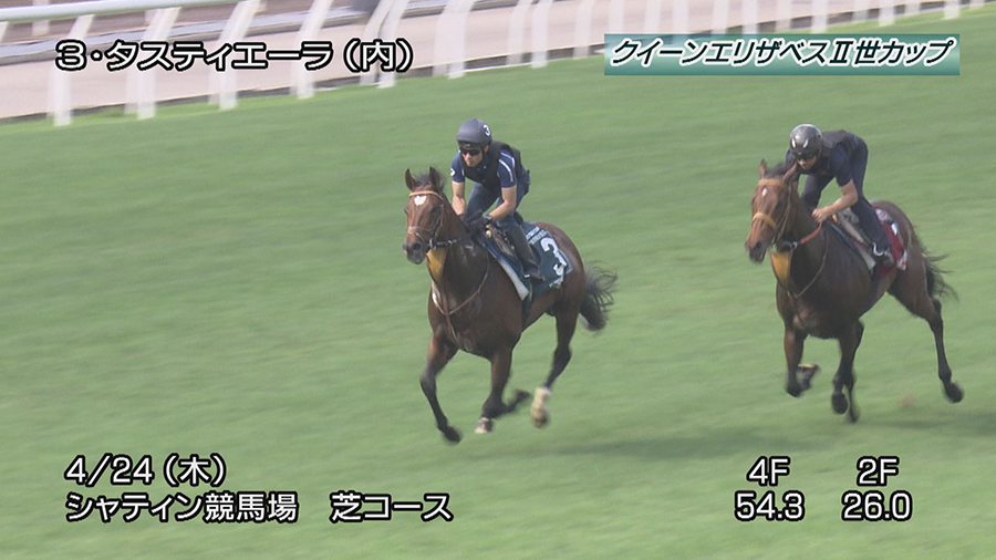 ドバイからの転戦ということで、これまで調整程度でやっていましたが、今日はラスト1ハロン気を入れるつもりで追い切りました。週末から今日にかけて、動き、芝の感触は良くなっており、馬はこの芝コースを理解しています。