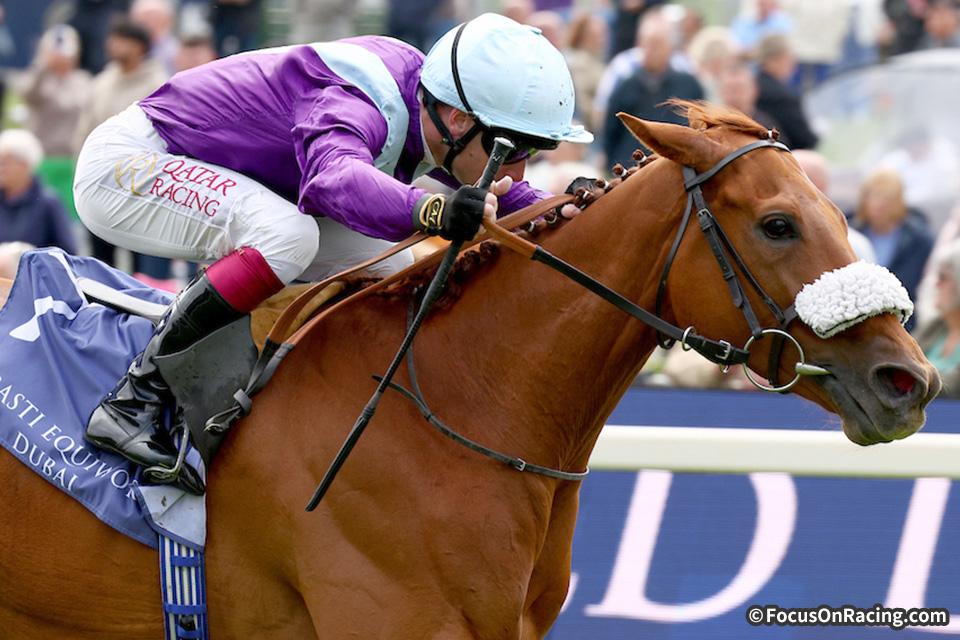 母はBCマイルやクイーンアンSを含むG1・6勝を挙げて米国競馬の殿堂入りを果たした名牝テピン。本馬は、2歳(2024年)8月のデビュー2戦目(アイルランド・芝1,400メートル)を逃げ切って初勝利を挙げると、4戦目のオータムS(G3・イギリス・芝1,600メートル)では先行策から2着馬との競り合いを制して重賞初制覇。続くフューチュリティトロフィーS(G1・イギリス)はハナ差の2着でしたが、3着馬は4馬身3/4差離していました。今年は3月のバリーサックスS(G3・アイルランド・芝2,000メートル)を逃げ切ると、5月の愛ダービートライアルS(G3・アイルランド・芝2,000メートル)も先行抜け出しの競馬で連勝。1番人気に推された英ダービー(G1・イギリス)は序盤に不利を受けたことも影響したか、バリーサックスSで2着に下していたランボーンの9着と凡走しましたが、続いて向かった前走7月のエクリプスS(G1・イギリス・芝1,990メートル)では6頭立ての最後方で直線に向くと、行き場を失う場面がありながらも、最後に外から強襲。プリンスオブウェールズSの勝ち馬オンブズマンをクビ差かわしてG1初制覇を果たしました。