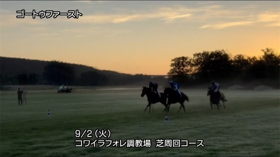 今日は先行する2頭の後ろで、折り合いをつけながら直線で並んでいくというかたちで追い切りを行いました。ジャックルマロワ賞の追い切りと同じコースではありましたが、そのときと比べて馬場が悪かったものの、こうした馬場を経験できて良かったと思います。動きはいつもどおりパワフルでしたし、疲れも感じられないので引き続き良い状態だと思います。