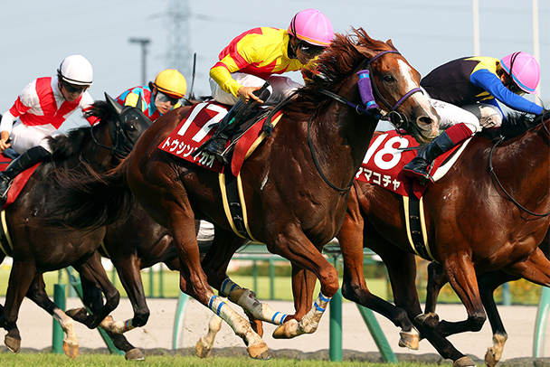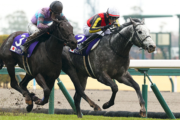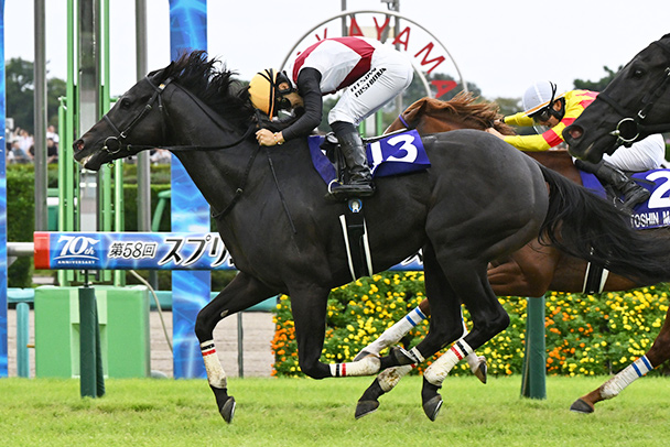 条件戦を使いながら少しずつ力をつけ、昨年7月にキャリア15戦目の3勝クラス・TVh賞(札幌・芝1200メートル)を勝ってオープンクラス入り。今年初戦のオープン特別・カーバンクルS(中山・芝1200メートル)で同クラス初勝利を挙げた。重賞初挑戦だったシルクロードSもV。全6勝のうち5勝に導いた川又賢治騎手にとってもうれしい重賞初制覇となった。川又騎手は「ずっと期待していて、重賞を取れるかもしれないと思っていました。ここから先も一緒に歩んでいきたいです」と、このコンビでさらなる高みを目指す。父譲りの成長力を生かし、ビッグタイトルをつかみ取る。