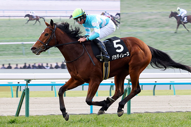 7番人気の低評価を覆した前走・フローラS。マイル戦から400メートルの距離延長だったが、道中は前に馬を置いて折り合った。残り400メートル付近でスペースを見つけると豪快な差し切り勝ち。2020年ウインマリリンのレースレコードを0秒1上回る1分58秒6のタイムで駆け抜けた。騎乗したA.シュタルケ騎手は「パーフェクトなレース。ペースが流れているほうが彼女には合っていると思いました。すごく能力がある馬なので、これからが楽しみですね」と称賛の言葉を並べた。2010年サンテミリオン(アパパネと1着同着)以来となる、フローラS勝ち馬によるオークス制覇を狙う。