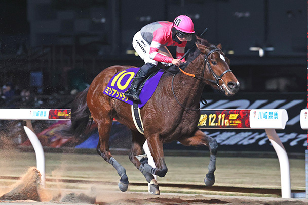 ダートでデビュー3連勝を飾った素質馬。昨年12月の全日本2歳優駿(JpnⅠ・川崎・ダート1600メートル)でビッグタイトルも手にした。芝は初挑戦となるが、3歳牝馬で52キログラムの斤量は魅力だ。