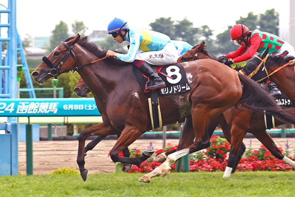 全5勝を北海道シリーズ(札幌2勝、函館3勝)で挙げている現役屈指の洋芝巧者。昨年はオープン特別・青函S(函館・芝1200メートル)を制した。4年連続の北海道開催参戦で重賞初制覇を目指す。