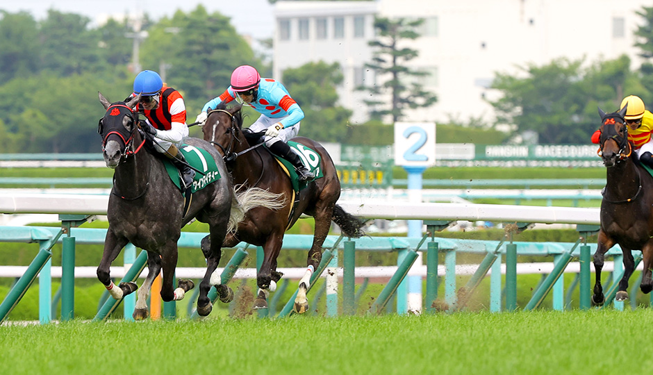 2コーナー付近に設けられたポケット地点からスタートして、本線に合流していくレイアウト。スタート地点から2コーナーまでの距離が短いが、先行争いはバックストレッチに入ったところで一旦落ち着くことが多い。バックストレッチ後半の起伏を越えて3コーナー途中までは下り勾配。徐々にペースを上げながら直線に向かう。ゴール前の直線は525.9メートル。直線入口から残り300メートル地点まで高低差2メートルの上り坂が続き、上り切ってからゴールまではほぼ平坦になる。一見すると芝1600メートルに類似したコース形態だが、コーナーが1つ増えることでペースに緩急が生じて中距離戦らしいレース展開になりやすい。展開に対応できる器用さや折り合いが要求される。