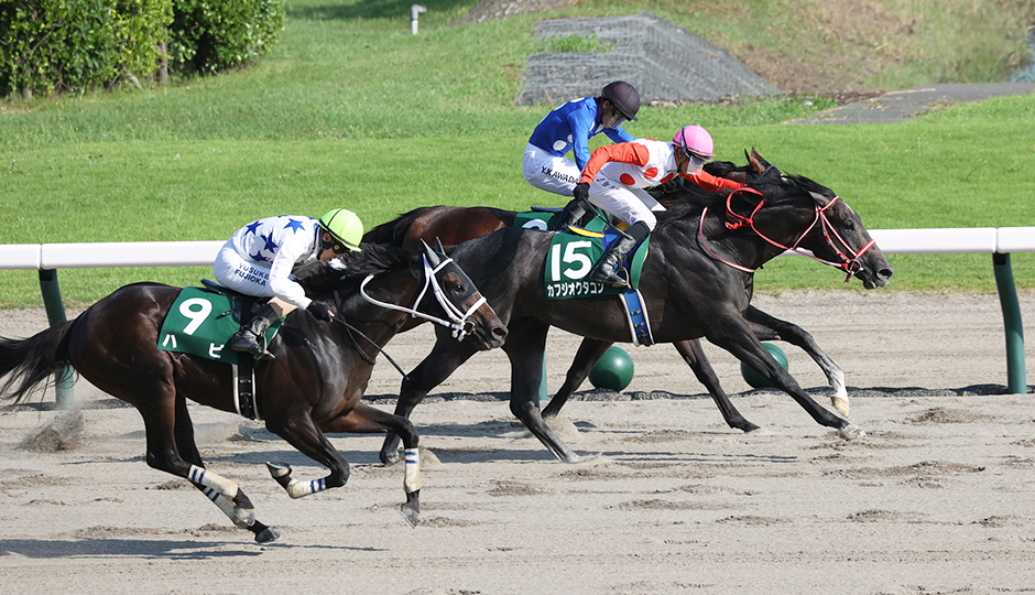 ホームストレッチの入口付近にゲートが置かれて、1コーナーまでの距離は約390メートル。バックストレッチは約400メートルあって、ゴール前の直線は353.9メートル。直線部分の距離はそれぞれ長いが、コース1周の距離自体は1472.5メートルとローカル競馬場としては平均的だ。裏を返せば、各コーナーがタイトでカーブがきついということである。3コーナーへの進入で一旦ブレーキを踏んで、4コーナーから直線に向けて再び加速していく、というレース展開になるので、脚を細かく小出しに使う必要がある。直線距離自体は長いものの、不器用なタイプはトップスピードに乗る前にレースが終わってしまう。機敏に動ける立ち回りの上手さが求められるコースだ。