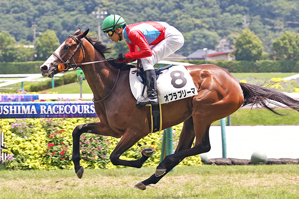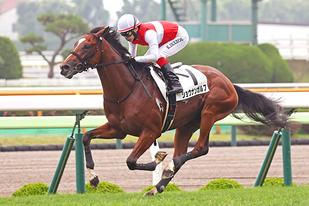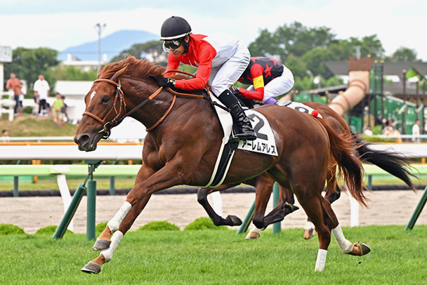 メイクデビュー福島(芝1800メートル)のパドックでは2人引きで少し難しいところを見せ、いかにも初戦といった気持ちの若さを出していた。ところがレースではそういった面をまったく見せず、優等生然とした競馬。中団で折り合うと4コーナーでは前を射程圏内に入れて直線で一気に伸び、各馬を飲み込んでの快勝だった。全兄のジオグリフは東京の新馬勝ちから札幌2歳Sも連勝。翌年の皐月賞ではイクイノックス、ドウデュースというその後、歴史的名馬に成長する2頭を抑えて優勝した。その偉大な兄に続けるのか、まずは札幌2歳Sの兄弟制覇を目指す。