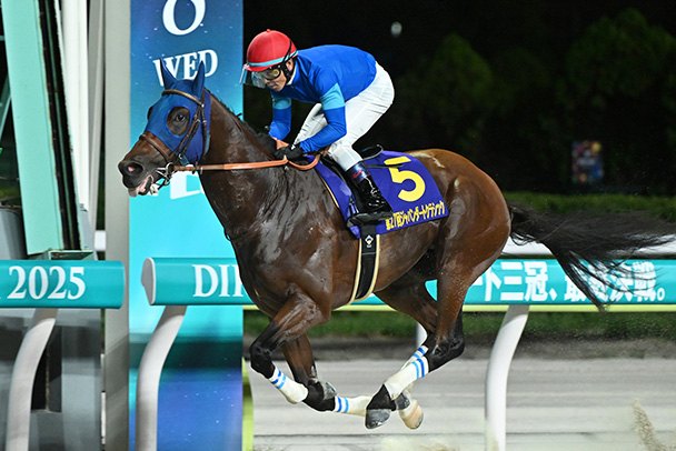 昨年11月のメイクデビュー京都(ダート1800メートル)で、2着馬に2秒0差をつける大差勝ちで衝撃的なデビューを飾った。4走前の1勝クラス(中山・ダート1800メートル)から4連勝をマーク。前々走の不来方賞(JpnⅡ・盛岡・ダート2000メートル)を2馬身1/2差で制して重賞初勝利を挙げ、前走のジャパンダートクラシック(大井・ダート2000メートル)は3馬身差をつける完勝で、JpnⅠ初制覇を果たした。自ら先手を取ってペースを刻み、そのまま押し切る競馬内容を続けており、展開に左右されない強みはここでも武器となりそうだ。中京は1戦して7着だが、本格化前のもの。ここでリベンジを果たしたい。
