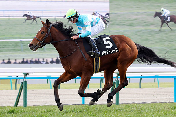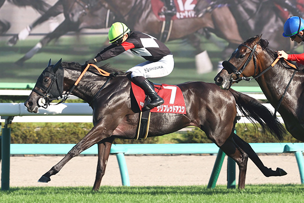 • ブリンカー着用の近2戦は勢い十分の逃げ。新スタイルが開幕序盤の芝コンディションで生きる。