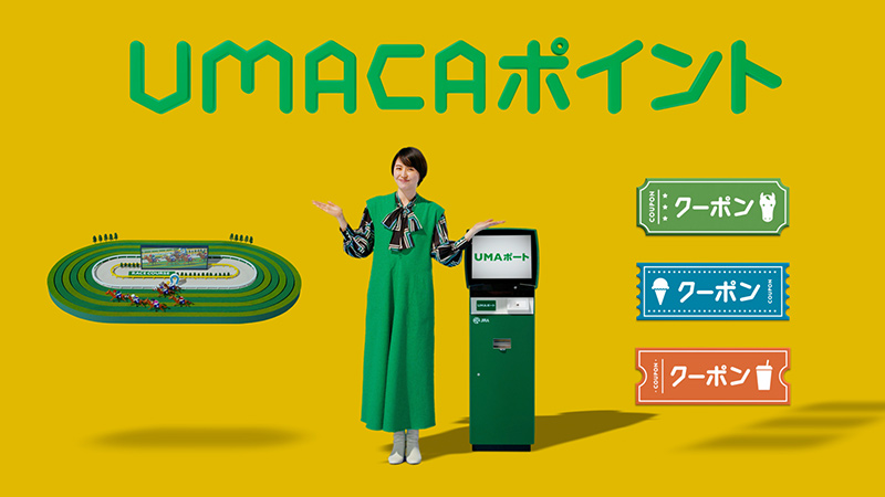 貯めたポイントはUMAポートから、UMACA精算可能残高へのチャージや、JRA施設内の飲食店や売店で利用できるクーポン・オリジナルグッズに交換いただけます。
