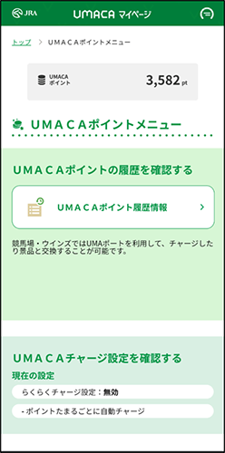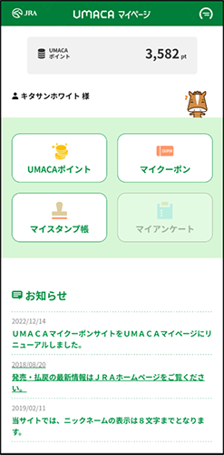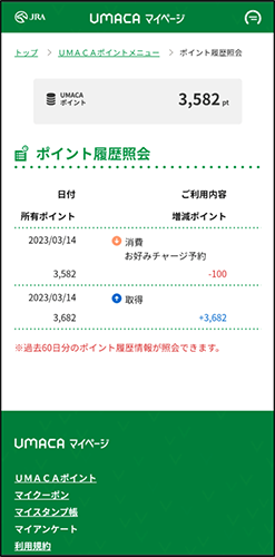 獲得したポイントはUMACAマイページまたはUMAポートでご確認いただけます。