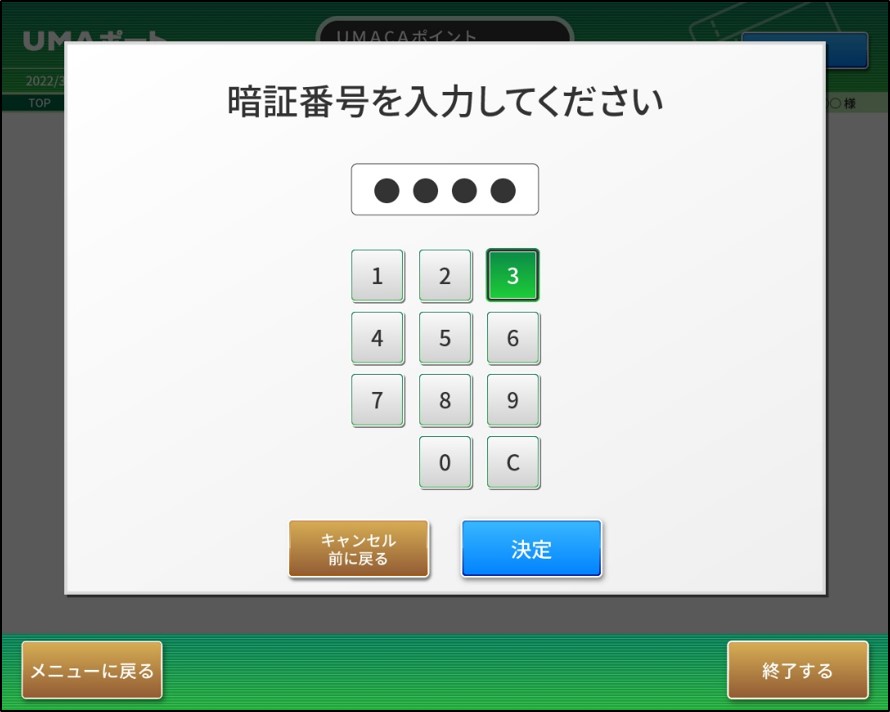 ただし、再設定した暗証番号をUMAポートでお使いいただけるのは、翌開催日以降になります。