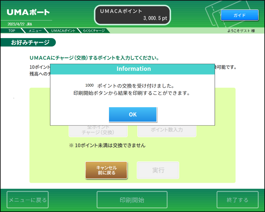 • 「OK」ボタンを押し、引換券(ポイント交換)を印刷してください。