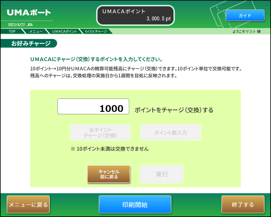 UMAポートで交換するポイントを指定した翌週にチャージされます