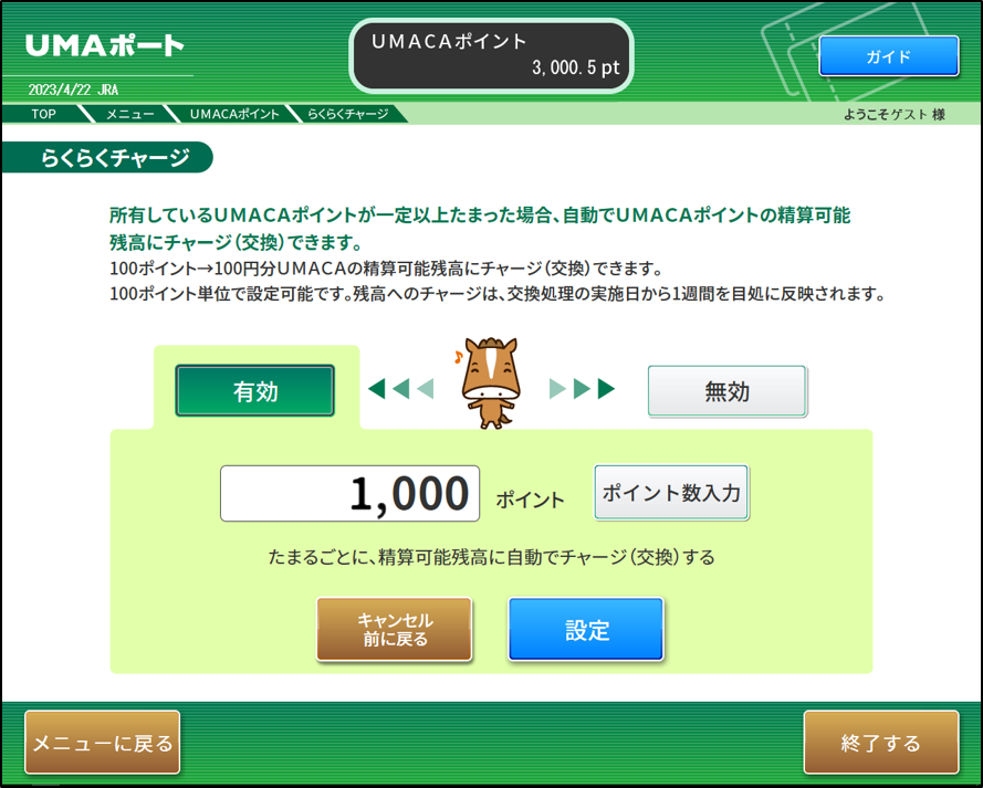 UMAポートで指定したポイントが貯まった週に自動でチャージされます