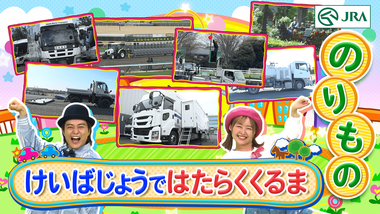 競馬場では様々な車が働いています。馬運車、ハロー車、散水車など、普段あまり見ることのない車を見ることができます。そのような競馬場ならではの風景をお子様向けの楽曲として制作し、楽しく歌いながら学べる内容となっております。