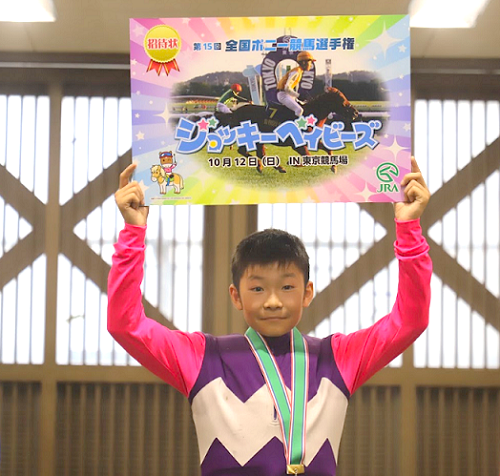 6月8日(日曜)、宮崎県宮崎市のJRA宮崎育成牧場にて「九州地区代表決定戦」が実施され、永谷愛琉(ながたにあいる)さん(中学1年生)が全国ポニー競馬選手権「第15回ジョッキーベイビーズ」同地区代表に決定しました。永谷愛琉さんは、10月12日(日曜)に東京競馬場で行われる決勝大会に出場いたします。