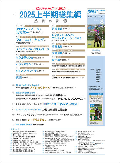 7月25日(金曜)発売のJRA機関誌『優駿』8月号は、2025上半期総集編をお届け。フォーエバーヤングの中東での激闘、クロワデュノールが制した日本ダービーなど、忘れられない数々の熱戦が繰り広げられた今年の上半期。ホースマンへのインタビューなどを通して、印象的なレースシーンやトレンドを振り返ります。