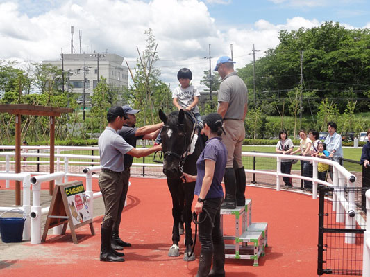 体験乗馬は係員が手綱を持っての引き馬となります。また、危険防止のため対象は3歳以上中学生以下とさせていただきます(お子様と保護者の方の2人乗りはできません)。また必ず保護者同伴でお願いいたします。