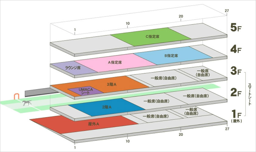 指定席・入場券予約サイトから各座席の席種をご選択ください。