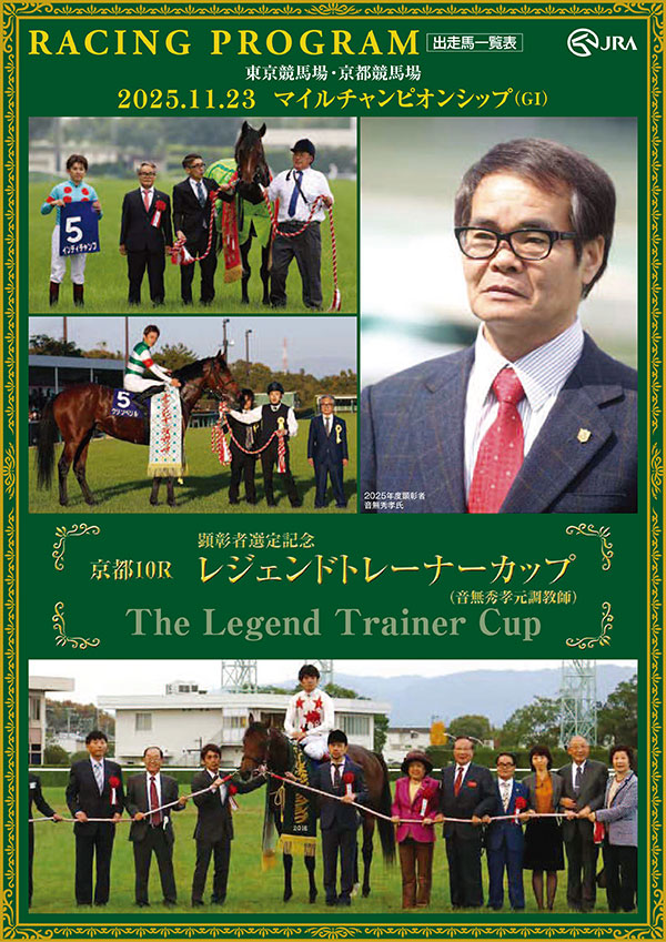 11月23日(祝日・日曜)は「音無秀孝元調教師顕彰者選定特別版レーシングプログラム」をお配りします。どうぞお楽しみに!