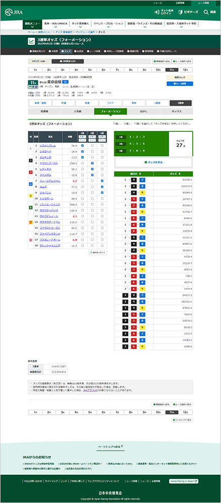 枠連・馬連・ワイド・馬単・3連複・3連単のオッズ表示について、これまでの「馬番順」「人気順」に加え、「フォーメーション」「流し」「ボックス」を追加いたしました。