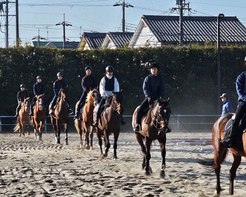 乗馬練習、馬の取り扱い(馬装・手入れ等)、厩舎作業