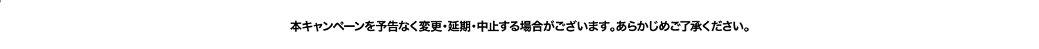 本キャンペーンは、予告なく変更・延期・中止する場合がございます。あらかじめご了承ください。